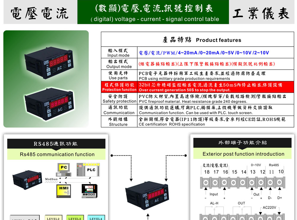 檢測范圍: 電壓:(AC.DC)0.00~600.0V 電流:(AC.DC)0.00~2000.0A 輸出模式: 上限.下限警報