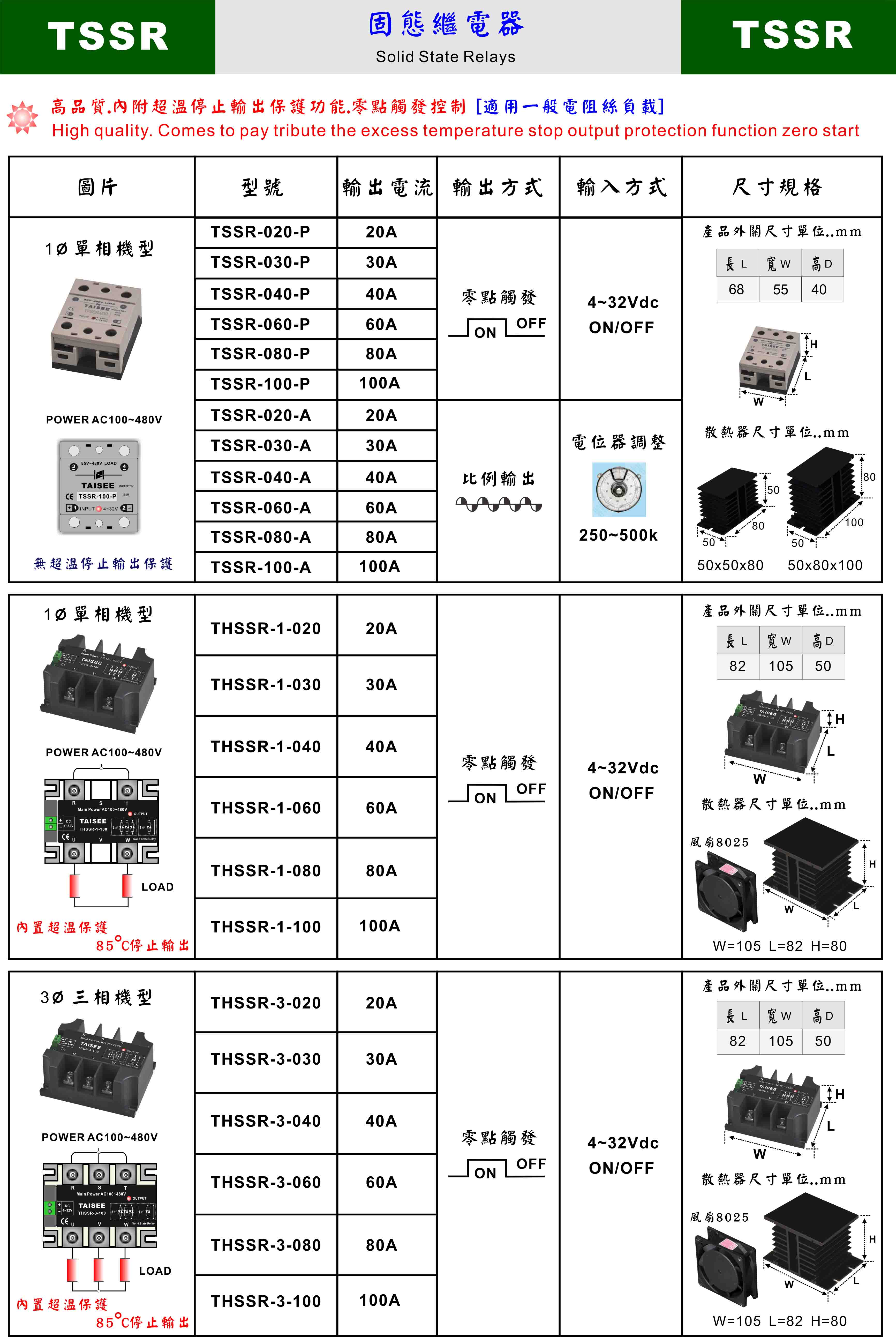 單相/三相 20A-100A 內置超溫保護功能